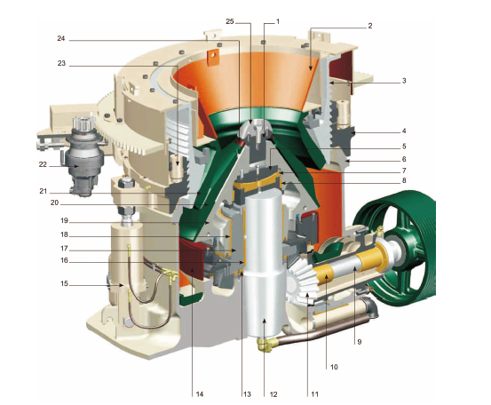 LCH 系列圓錐破碎機(jī)只需更換定錐襯板、動錐襯板、適配環(huán)和楔塊螺栓,即可將破碎腔型在短頭超細(xì)到標(biāo)準(zhǔn)超粗之間任意轉(zhuǎn)換。