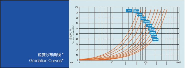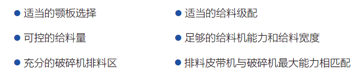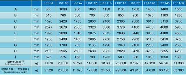 以上數據所表示的破碎機產量,是針對平均比重為 2.7t/m 3 ,給料能夠順利進入破碎腔、無架橋卡堵現象,給料剔除小于排礦口細料時取小值,含細料時取大值。產量可能隨給料方式和物料性質諸如粒度組成、含水含泥量、松散密度和可碎性而變化。