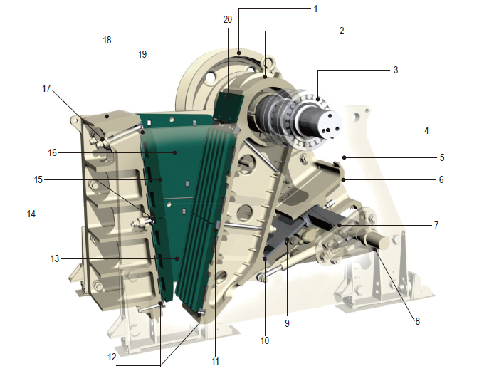 LCC 系列顎式破碎機采用了獨特的模塊式、無焊接框架結構,兩塊熱軋鋼側板通過精密加工的緊固螺栓與高質量鑄鋼機架牢固地栓接在一起;動顎總成采用高質量的鑄鋼件構成,通過兩個大型鑄鋼飛輪傳動;鍛造的重型偏心軸和四個同等規(guī)格的大型球型滾動軸承,使之具有超凡的可靠性;迷宮式密封保護軸承中的潤滑油脂不被污染;整體鑄鋼軸承箱能夠保證與破碎機架完全配合,并且還能避免對軸承架造成過大的負荷。